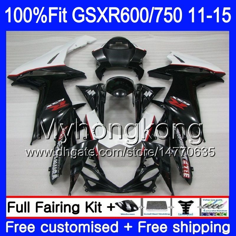 Injection Black White For Suzuki Gsxr750 2011 2012 2013 2014 2015