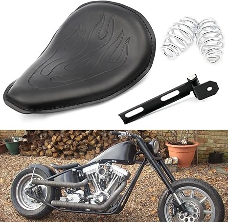 Motofans Black Flame Leather Slim Solo Seat For Motorcycle
